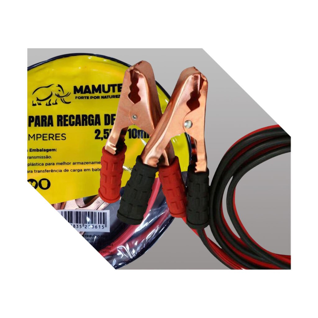 Recarga emergencial de bateria automotiva por meio de ligação direta entre veículos. Indicado para uso em carros de passeio, SUVs, utilitários leves e em oficinas mecânicas, auto socorro e situações de emergência em geral.